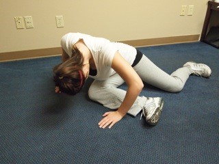 Lay face down on the ball. Bend your knees and relax. Tuck your chin into the ball. Roll the ball forward over the top of your hands until you feel a gentle stretch in your lower back. Repeat for ______